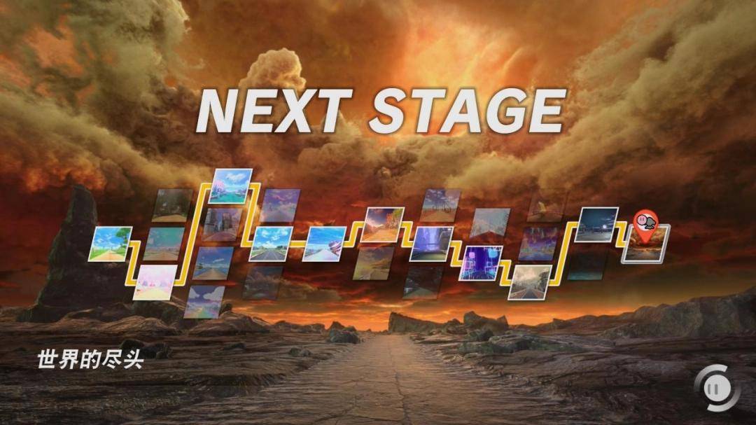 最后,让我们来聊聊游戏的“公路旅行”模式。它基本上可以被看作更为精炼的“灯火之星”模式,玩家将如经典街机游戏《Out Run》一般,在11张风格各异的大地图章节中穿行——每一章中,玩家都会面对十数个包含竞速、战斗、体育场等模式在内的三选一迷你关卡,并在这个过程中以较慢的节奏收集、培养载具。