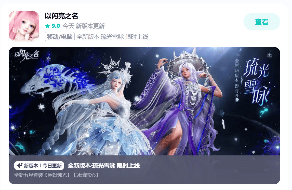听说了吗各位宝子们,2025年10-11月女性向手游流水排行榜中,前两名又有咱们《以闪亮之名》!说来已是司空见惯的事情,上线2年9个月以来,在新品迭代如潮的女性向赛道中,“卷王”《以闪亮之名》交出了一份漂亮答卷。Taptap评分高达9.0,是女性向游戏最受好评的游戏之一!