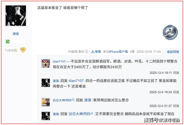 在超强福利的加持下,他的帮会“醉酒折花”也成为了游戏中最顶级的存在,多次拿下游戏中重磅赛事的冠军,是人人敬畏的绝对T0。