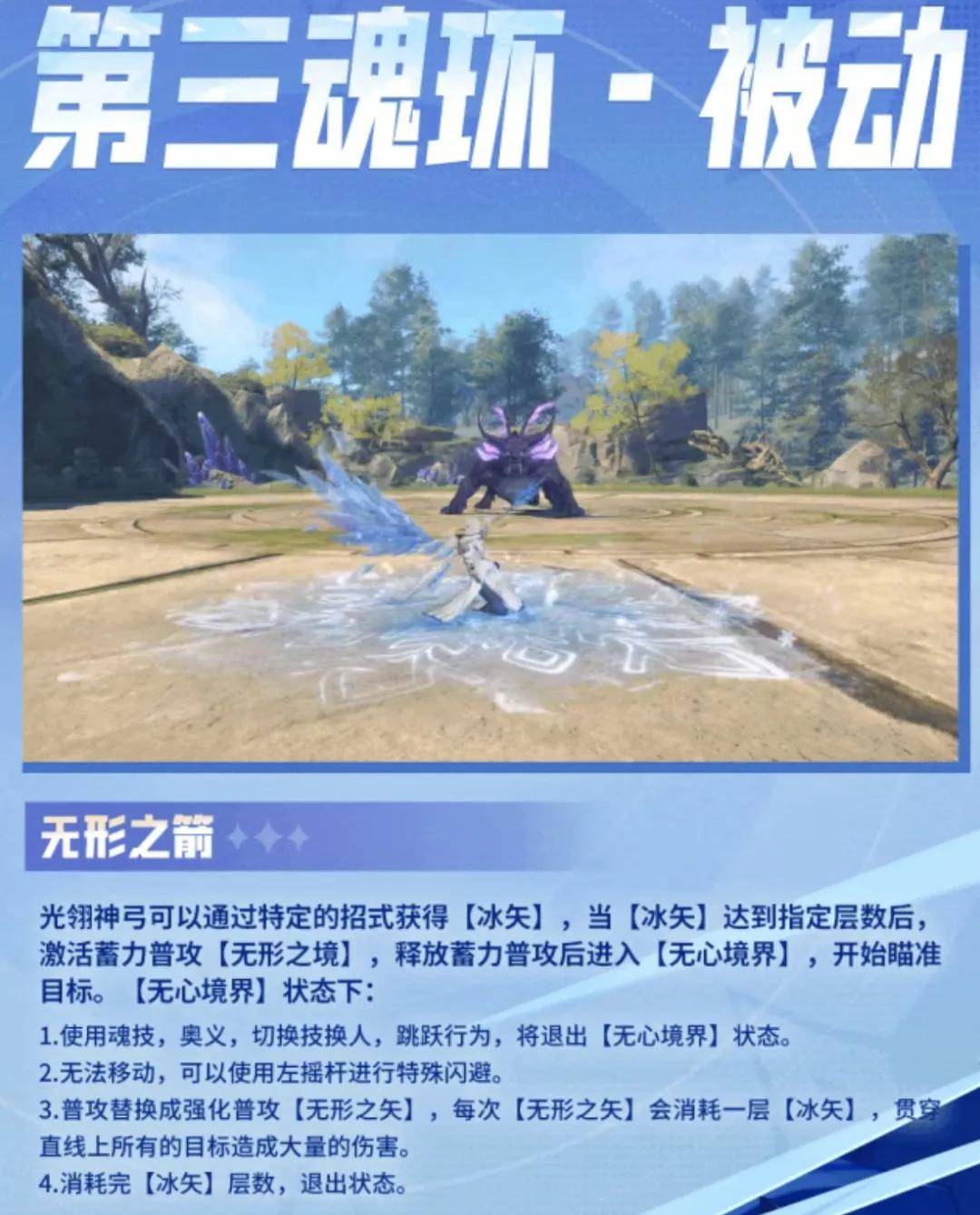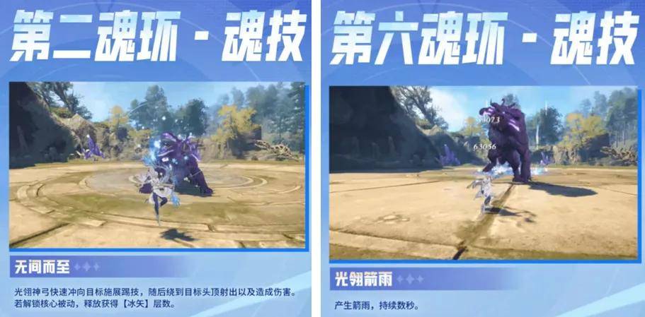 然后光翎的两个魂技就更简单了......全部都是输出类型的,其中2魂技可以叠加“冰矢”层数,而6魂技居然一共只有8个字的介绍......