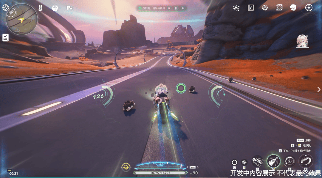 因此,「平坦+路网」成了3.0的设计基调,不仅一大半地图的地势相对平坦,地图还里遍布着残缺赛道、U型坡道……从摩托冲刺漂移跳跃的操作体验,跑图的爽感和速度感,到第一视角切换、车载电台、邀请角色共乘摩托等衍生玩法,3.0版本做到了让玩家一上车,就能轻松获得大量新奇体验。