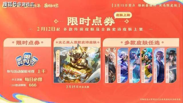 2月12日,一年一度的小王送福也会开启,这是保底能拿限时点券的活动。