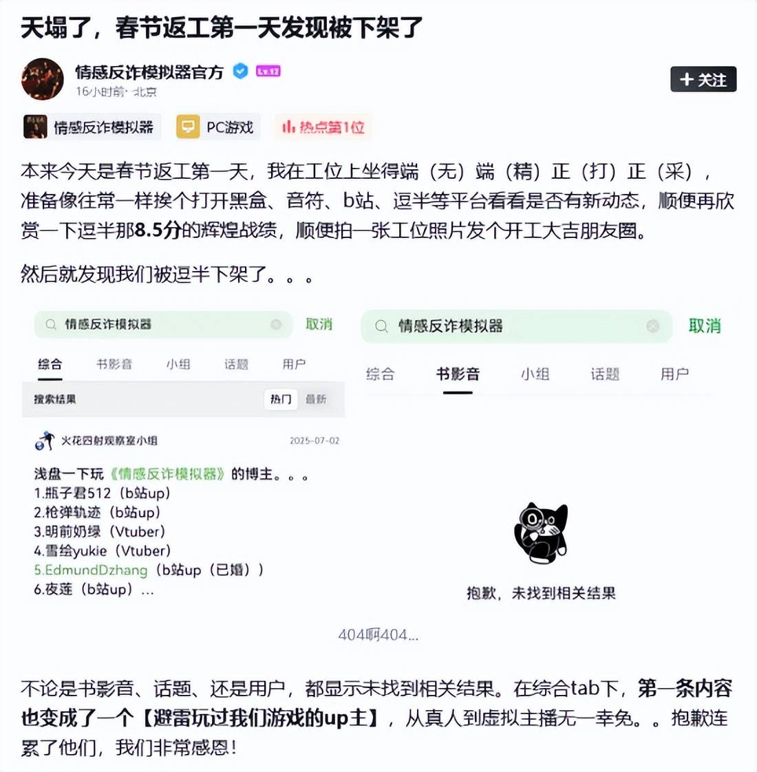 划重点:《情感反诈模拟器》突遭豆瓣下架,官方称“完全想不通下架原因”