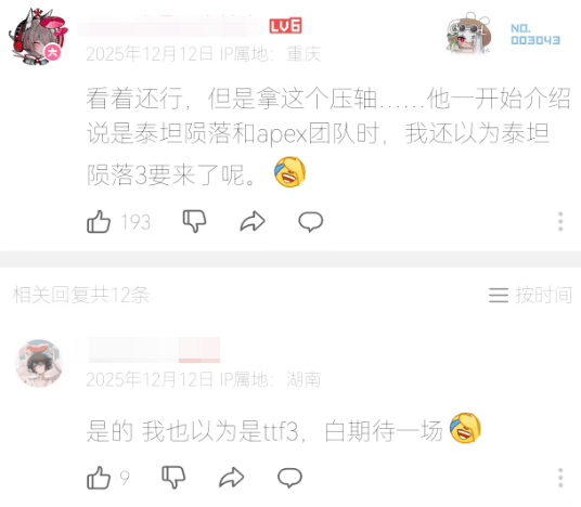 站在不少玩家的视角,作为压轴登场,再加上Geoff介绍时提到的“泰坦陨落和Apex团队”等关键词,让不少观众有了过高的期待,而当期待落空时,印象自然也不会太好。