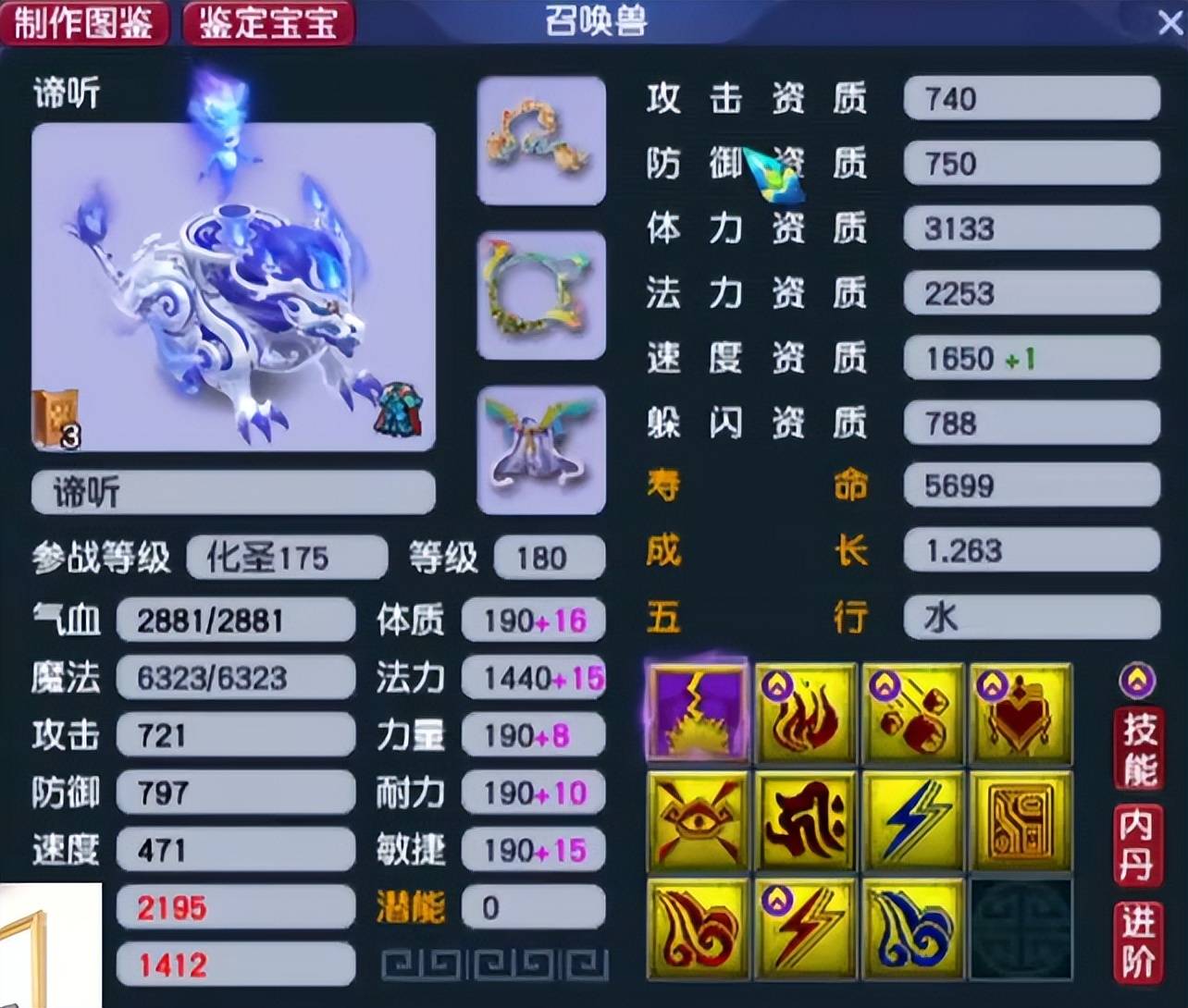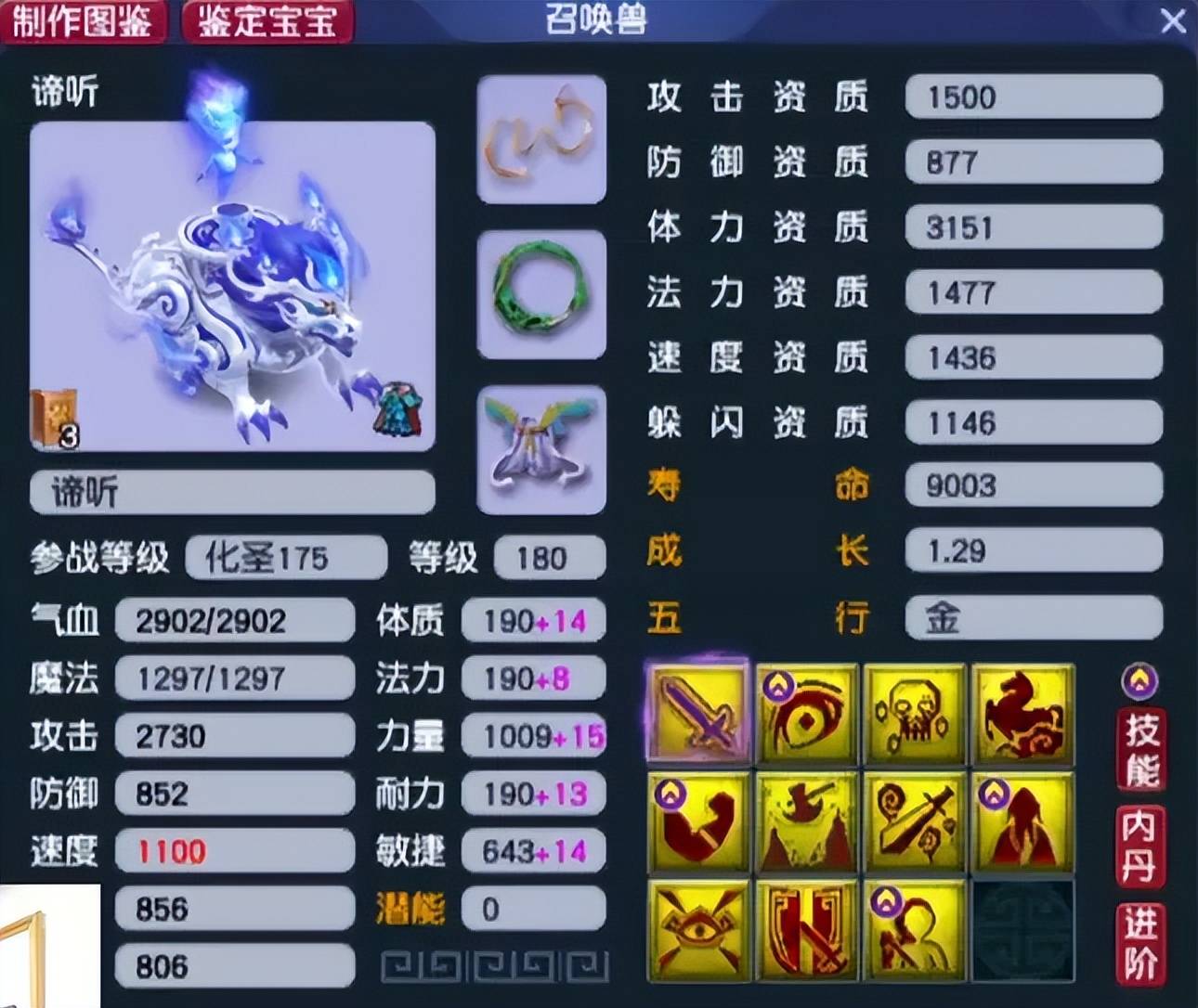 8技能全红攻谛听,全敏加点用于清宠。