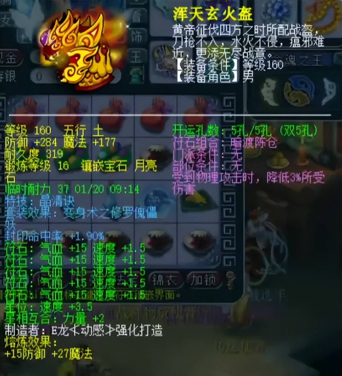 160级晶清带1.9%封印的头盔,镶嵌16锻月亮石+熔炼总防299。晶清能在关键时刻全体解封并缓解血线压力,加上接近极限的封印蓝字,算是全服孤品级封印晶清神装。
