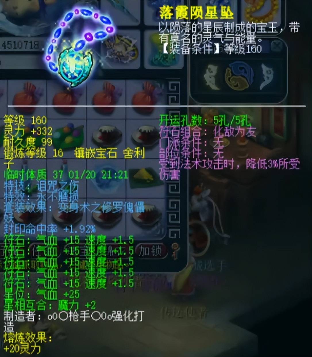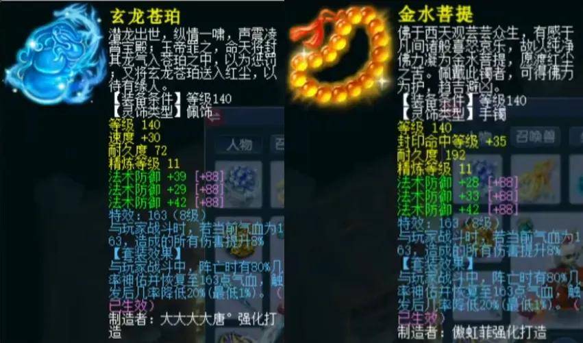 后排灵饰选用六法防。佩饰速度30极限属性,下排三法防共110爆26;手镯抗封35爆7,下排三法防共113爆29。
