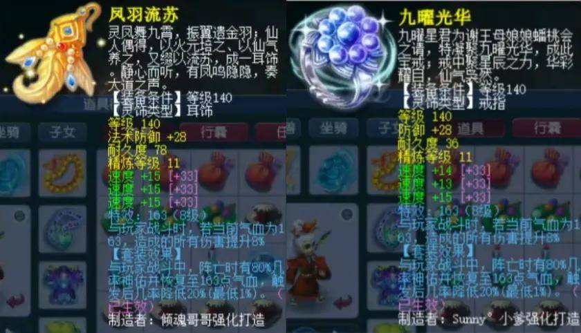 前排灵饰选用六速度。耳饰上排法防28国标,下排速度共45为极限属性,这就是全服第1三速度耳饰;戒指上排防御28国标,下排速度共42爆12。
