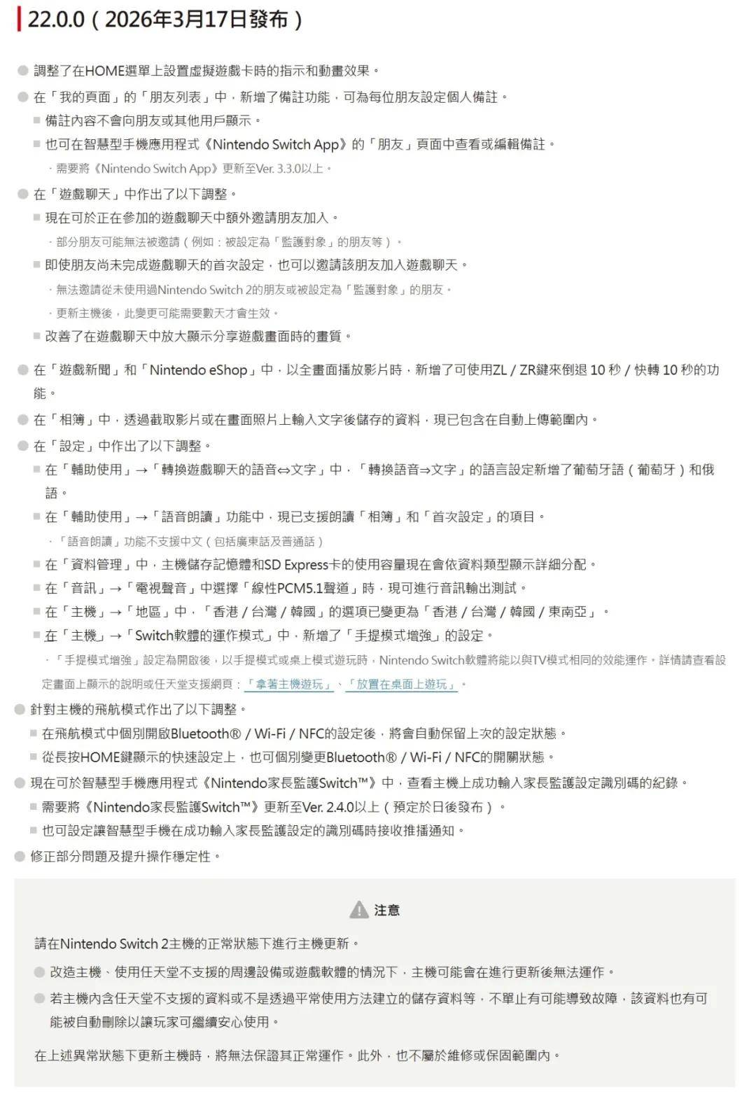 3月17日,任天堂毫无预兆地推出NS/NS2的22.0.0新版本,主要是NS2带来巨大升级。