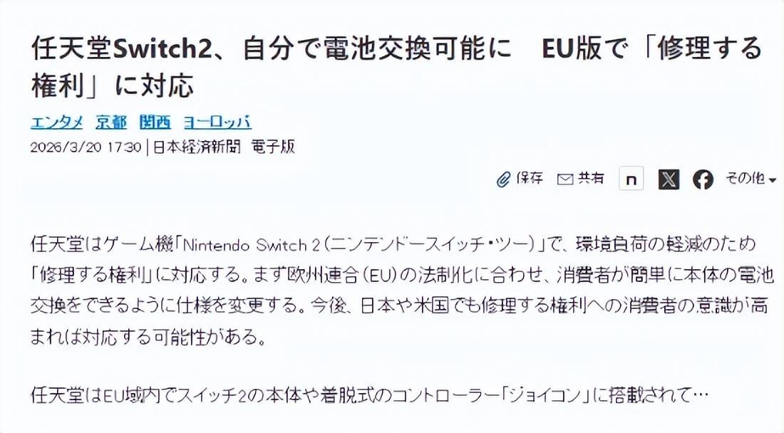 据悉任天堂希望通过这一改动降低产品对环境的影响,同时提升设备的可维修性,首批新机型将投放欧洲市场。