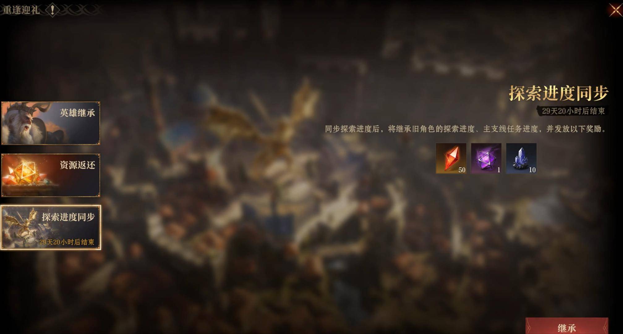 为彻底解决回归玩家的后顾之忧,游戏同步上线了“探索进度一键继承”系统。该系统将自动完成玩家角色离开期间的所有主线剧情、沙盘探索进度,并一次性发放所有错过的任务奖励与资源。结合“累充进度继承”功能,回归玩家将在登录瞬间解锁对应档位的所有充值奖励,无需任何追赶过程便能直接进入游戏当前最高水平的冒险阶段。