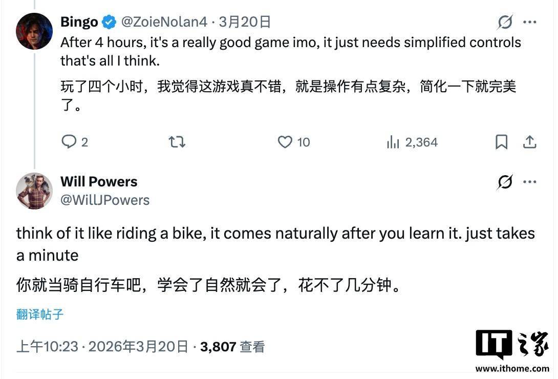 针对玩家“应该简化操作”的建议,市场总监威尔 · 鲍尔斯说:“可以把它当成骑自行车,学会之后就会变得很自然,只是需要一点时间。”