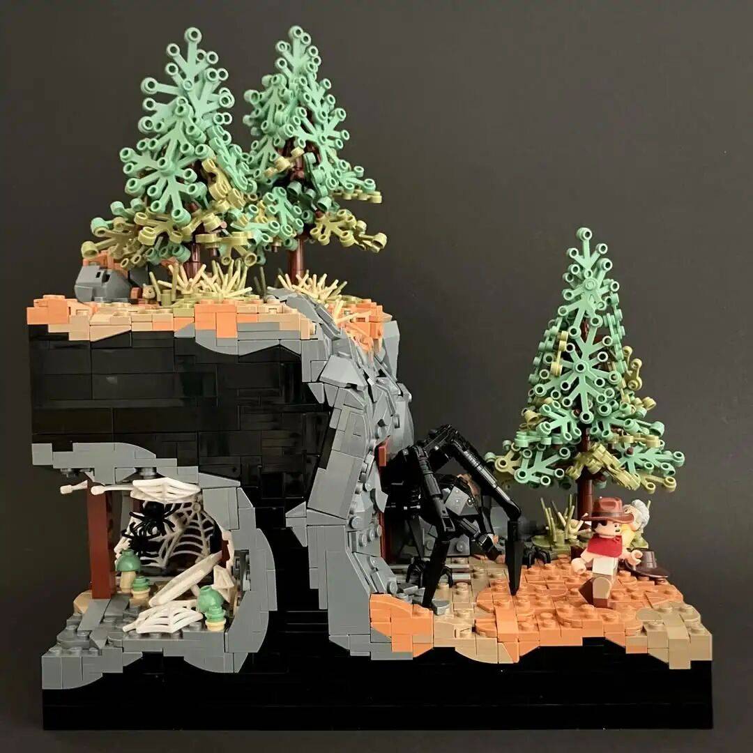 Kaleb 这件作品,致敬了 Boylei 的经典微缩场景——矿井里的蜘蛛陷阱。