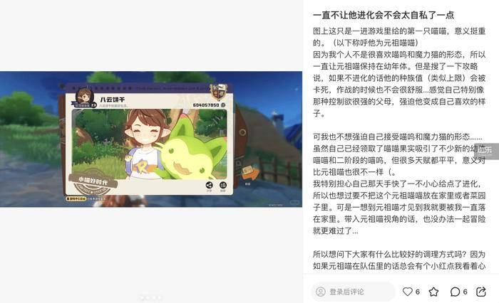 还有“留影功能”,你能在很多地方记录下自己和某只精灵的互动,当画面被留下时,这种互动和那只精灵一起定格,当然是独一无二的。在这些内容的引导下,玩家们会自然与精灵之间便会产生私人的情感,因此,在社交媒体上,你能看到许多玩家在分享自己和精灵之间的特殊性,或者强调自己喜欢具备某种特质的精灵,这也让精灵不仅仅意味着战斗伙伴或者宠物,还可能意味着偏爱、陪伴感甚至自我表达。