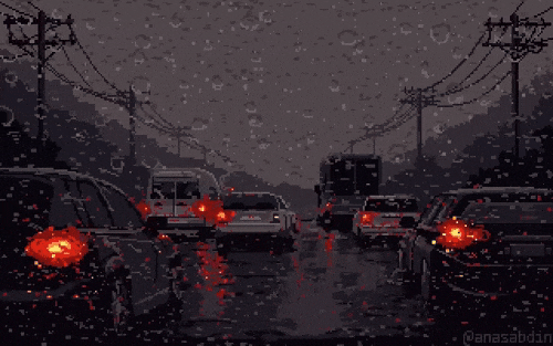 1. 像素艺术欣赏:堵车的雨天,图 2 为绘制过程(Twi/X:AnasAbdin)