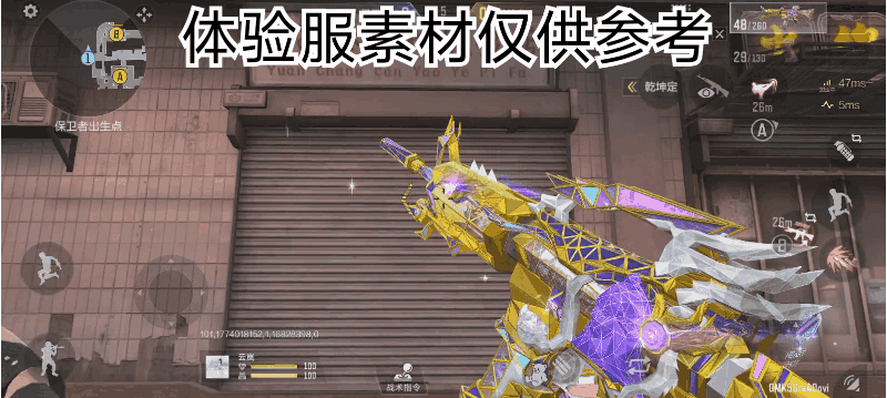 主武器皮肤王者之圣-HeartShot,沿袭了女团系列风格皮肤金、紫、白的主基调撞色,其中紫色除了点缀在枪身各处棱形碎片处之外,在枪身中部和顶部提把上的视觉美学表现的极其巧妙,提把处的色调变化非常明显,还有过渡和渐变的设计十分优雅;枪身中部则采用蛛网般秘籍的棱形碎片布局,平铺紫色配上流光特效如浩瀚星空般绚烂,后部的银色点缀更是使得原本的造型如同六张翼展一般,实属画龙点睛之笔!
