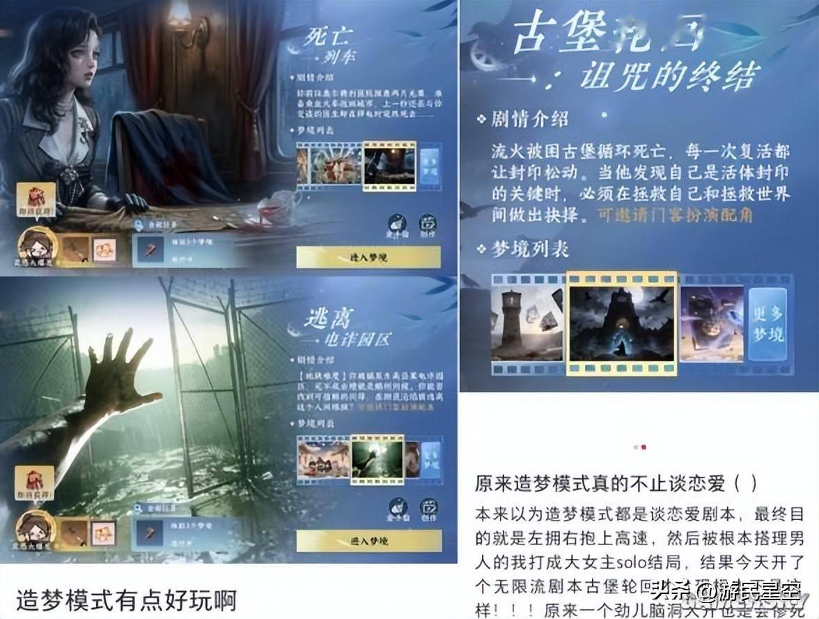 从形式上来讲,“造梦模式” 本身就是由无数玩家创建的“副本”组合而成。举例来说,你既可以在现代剧本中,进入电诈园区体验死里逃生的惊险刺激;又可以在悬疑片场中扮演侦探,被意外被卷入一场经典的火车大劫案......从剑与魔法、修仙玄幻,到悬疑惊悚、情感喜剧,各类风格迥异的剧情演出,都可以依托 “造梦模式” 高自由度的架空设定与脑洞创意轻松实现。
