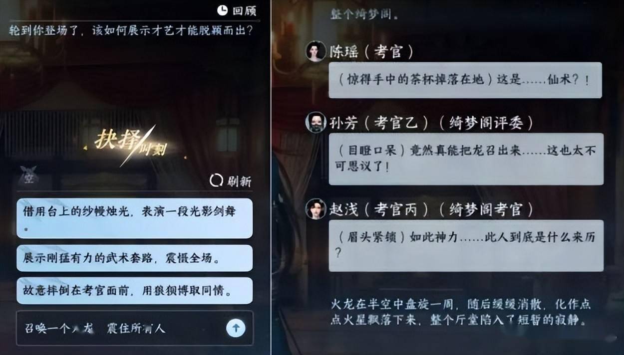 事实上,不同梦境虽然都会有一个大体框架,但故事的整体走向还是由玩家亲自决定。比如,如果你不太满意剧本中给出的的固有选项,除去刷新一批选项的选择之外,该模式实际还支持玩家自由输入自己的决策内容;在AI技术的支持下,剧本中的NPC们也会针对我们输入的内容,做出不同于脚本设置的实时反馈。