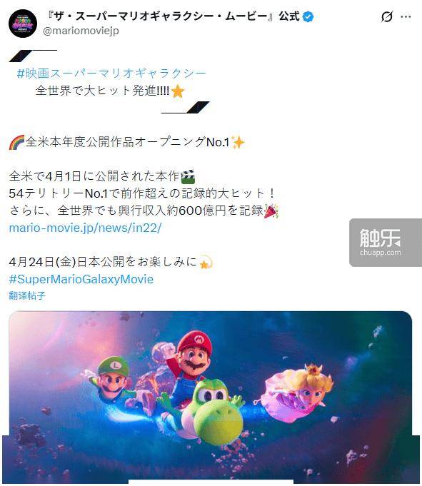 《超级马力欧银河大电影》全球累计票房突破600亿元