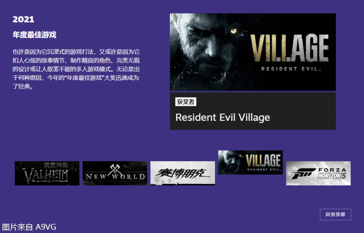 Steam 2021大奖获奖名单公布《生化危机8 村庄》获年度最佳