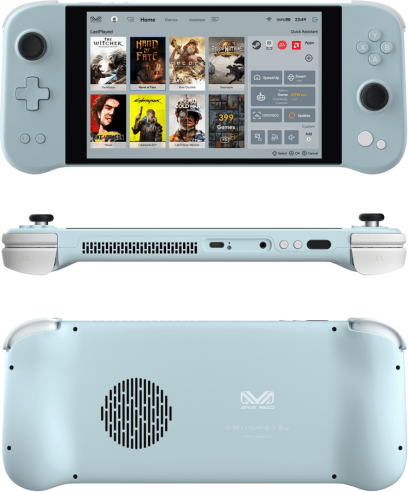 AYANEO NEXT 正式版拥有活力白、微风蓝、石墨黑、午夜灰多种创意配色选择,为 Windows 掌机带来前所未见的酷炫色彩。