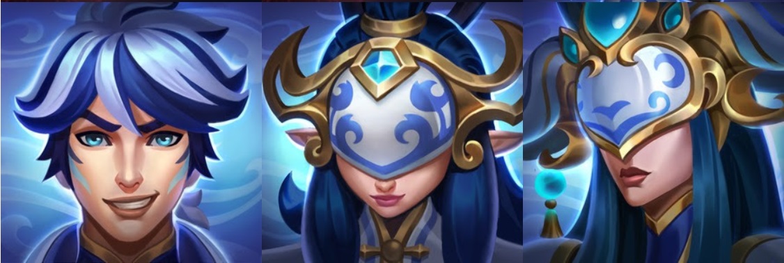 目前透露出来的四个皮肤模型图就是这样,不过因为图标有五个,因此有可能还有一个女英雄还没有公布,整体形象是一个遮住眼睛的长发女英雄,大家可以猜测一下看看这个英雄会是谁,符合条件的英雄其实不多。