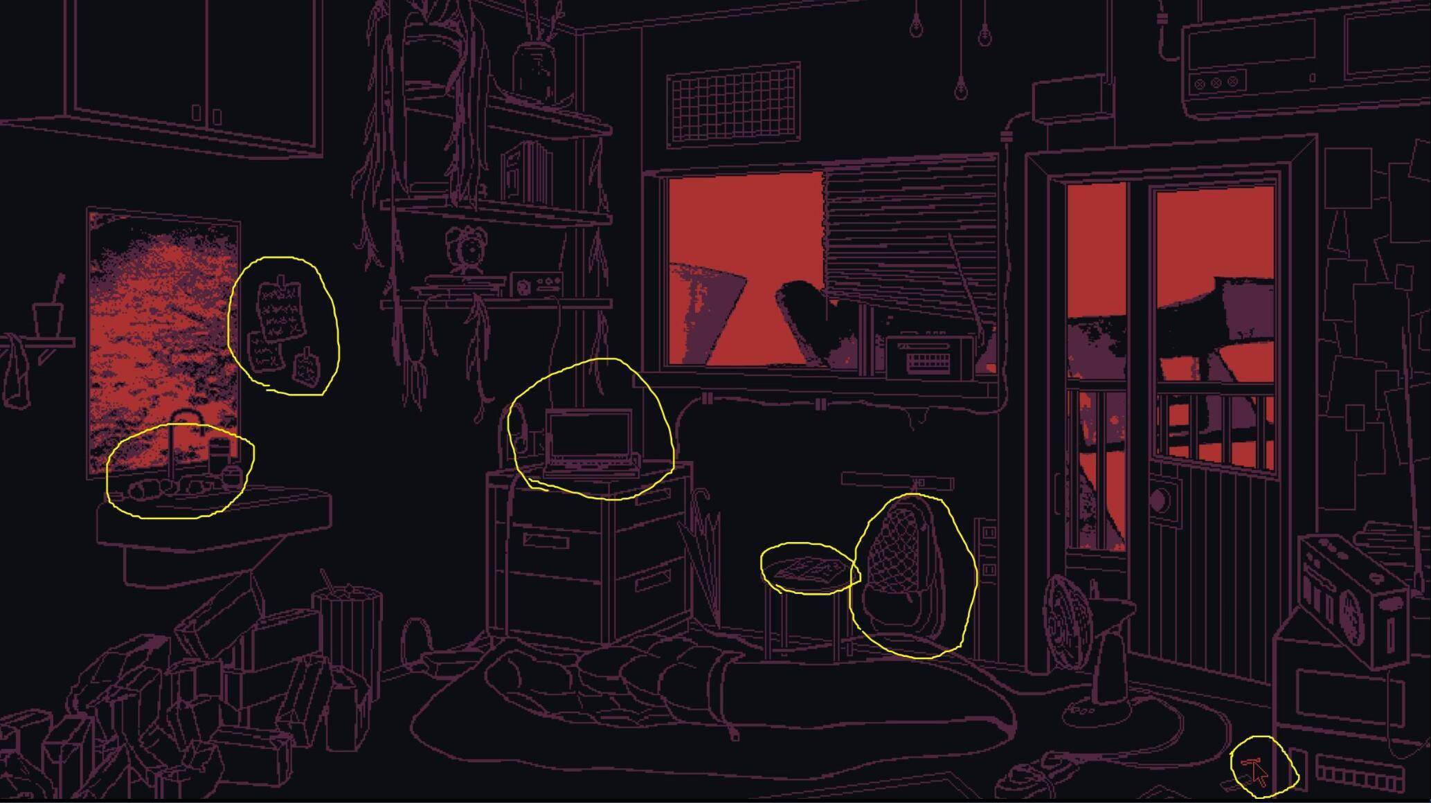 在Nikita Kryukov的这两部作品中,对于“gameplay”都采取了极简的处理方式——在《Milk inside a bag of milk inside a bag of milk》中,小女孩把自己想象成AVG游戏中的人物完成了“任务”,而在《Milk outside a bag of milk outside a bag of milk》中,“gameplay”环节基本仅仅存在于一个室内的“线索寻找”和其中部分的关键对话环节(攻略可以参考下个部分)。