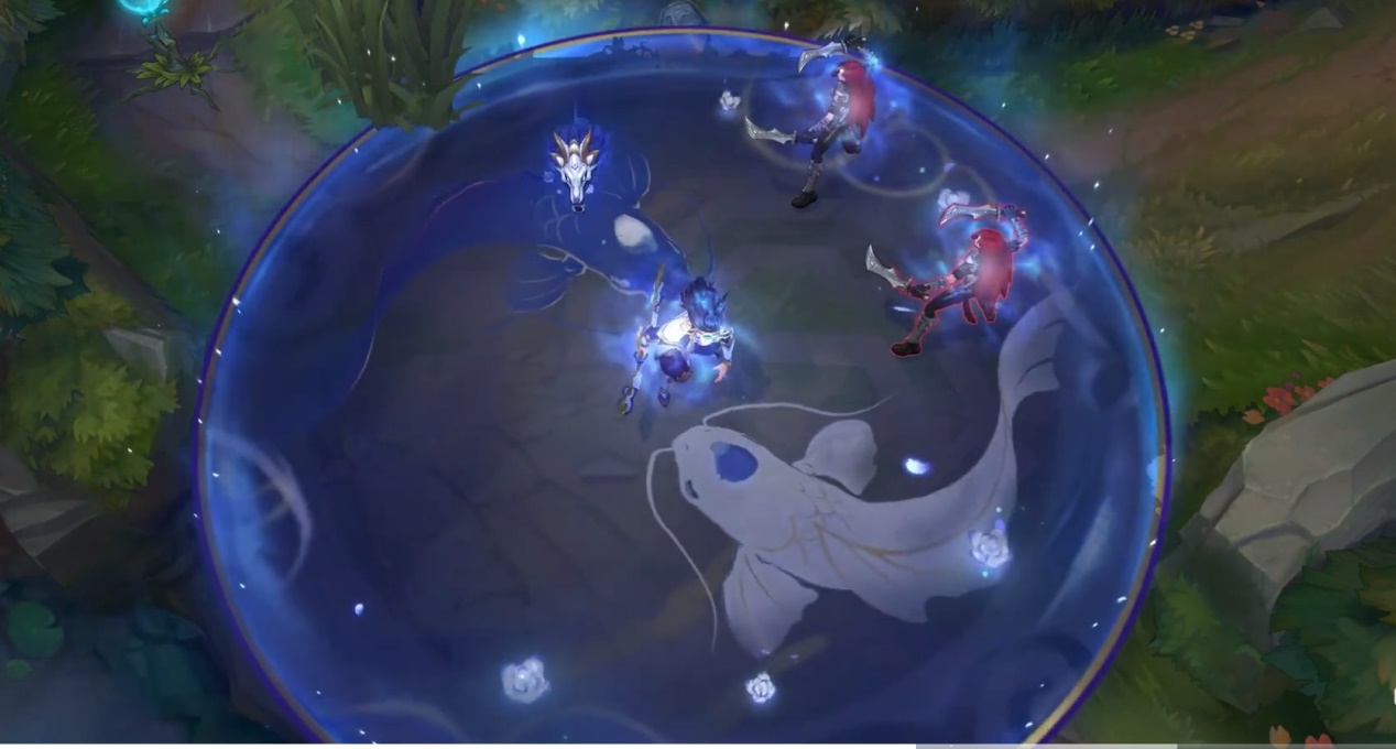 除了EZ之外,其他的四款青花瓷系列主题皮肤的设计水准也是很高的,个人认为千珏就设计得非常好,模型和特效都比EZ好一些,千珏使用大招的时候,大招范围会出现两条大鱼,形成阴阳图,非常漂亮。