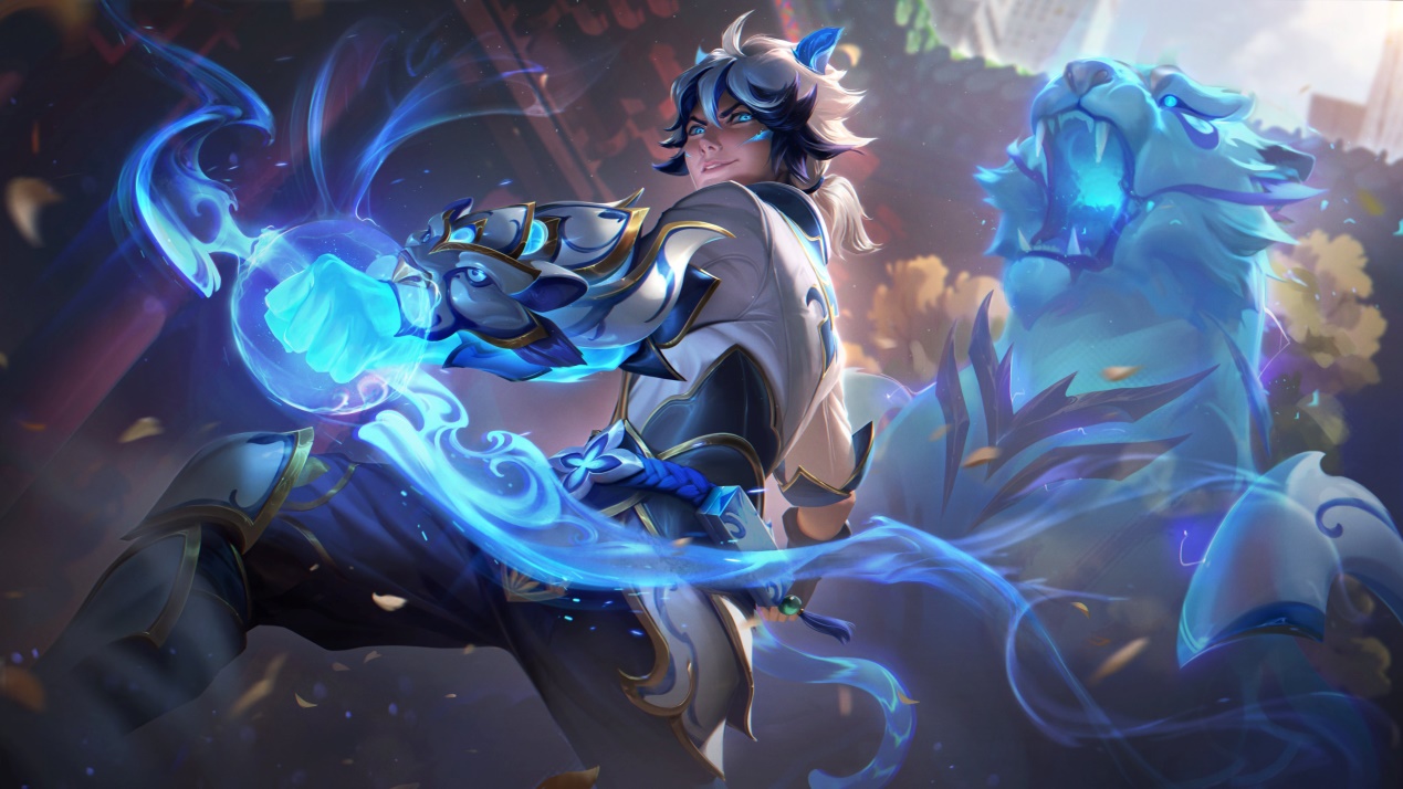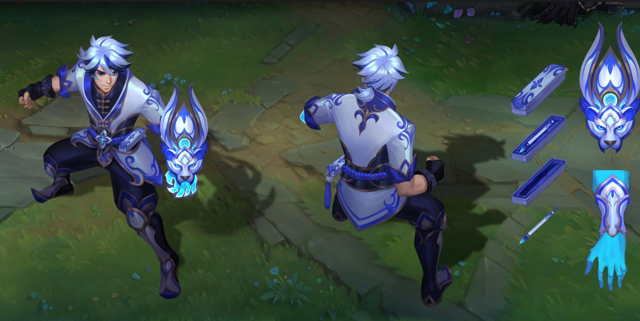 其中EZ的青花瓷系列皮肤,使用Ctrl+2,召唤白虎的同时,以青花瓷来演奏周杰伦《青花瓷》的背景BGM。