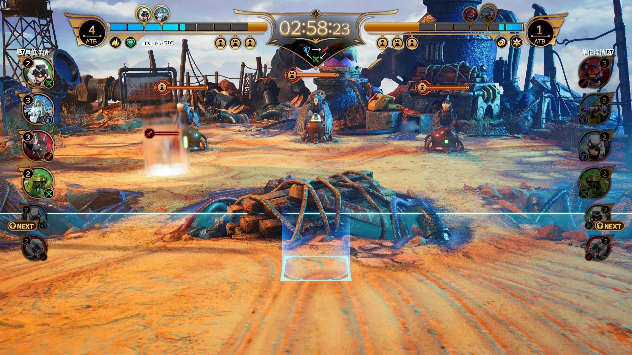 操作感增强其实带来的一个重要问题就是它和“切换角色”某种意义上是相斥的(所以更加需要FF12的战术系统回归),在尤菲DLC中,队友索隆是不可以直接操作的,我们只能控制他使用能力,以及使用新增的“合击模式”——在合击模式下,索隆会配合尤菲完成攻击行为(但ATB条累积速度会减半),游戏中还有大量的特殊魔晶石来强化这种战斗方式。
