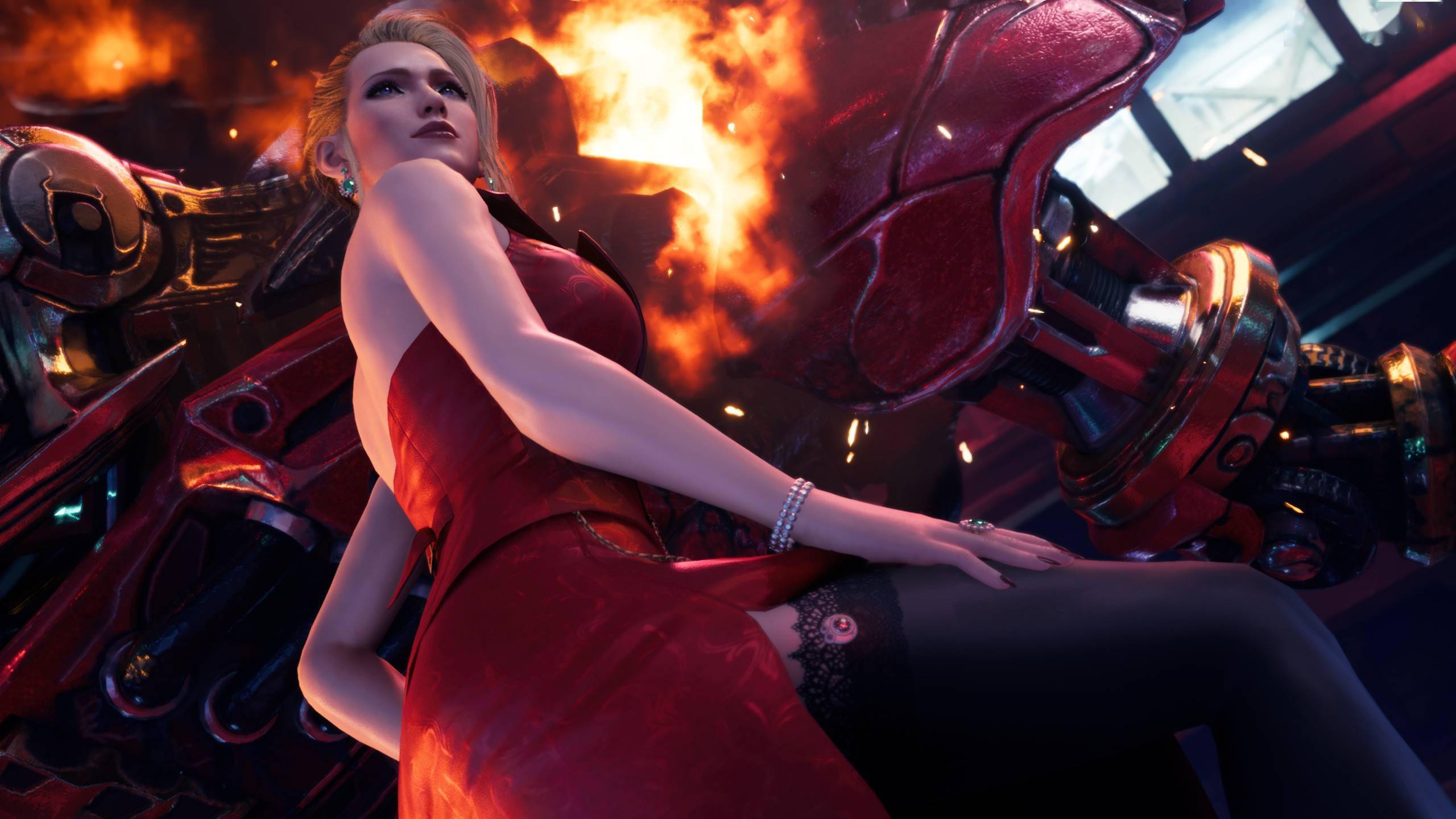 作为尤菲DLC中的头号反派,SM女王风格的神罗干部斯卡雷特也获得了大量的表演时间,作为兵器开发部门的领导,有一场BOSS战就是与她驾驶的机甲进行战斗。