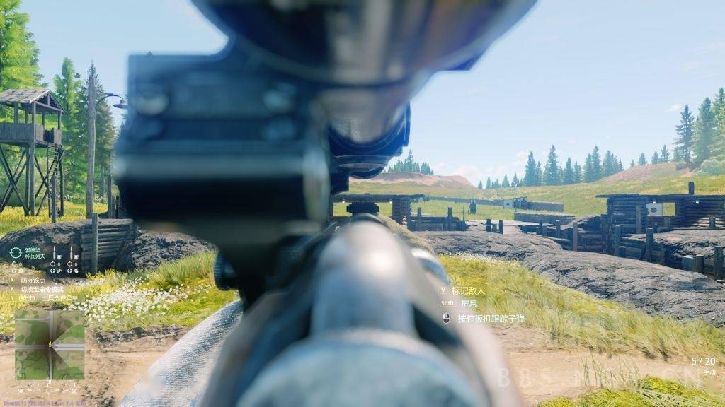11.在7下面会有一个蓝条,那是你的耐力条,跑步/屏息会消耗耐力,耐力条空了以后就没法跑步了,也没法屏息瞄准,而且你在瞄准时会瞄不准,枪乱晃。