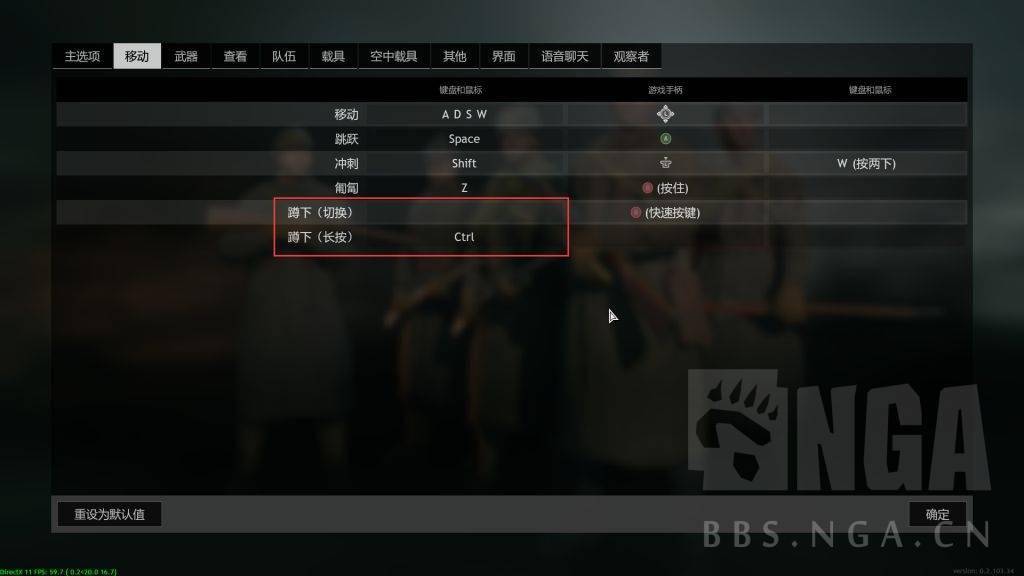 下蹲是CTRL而不是许多FPS里的C键,切换下蹲和按住下蹲可以在按键设置中调整(如图)