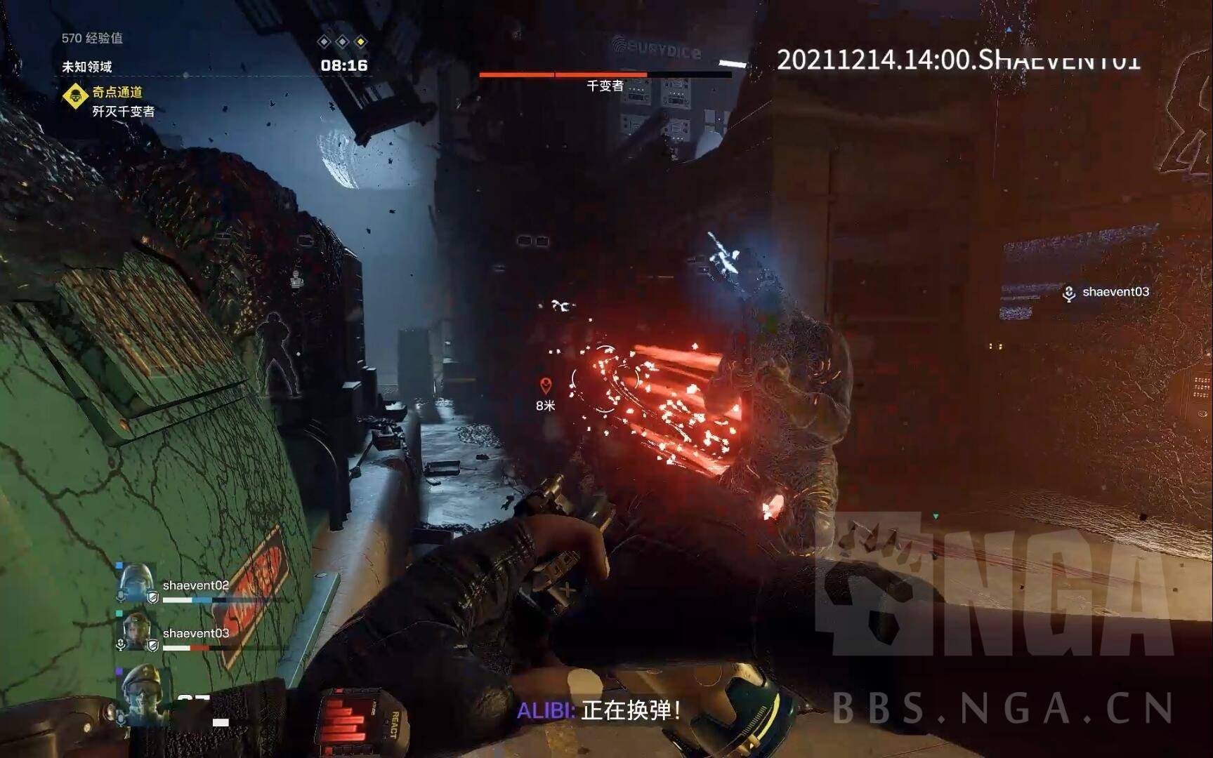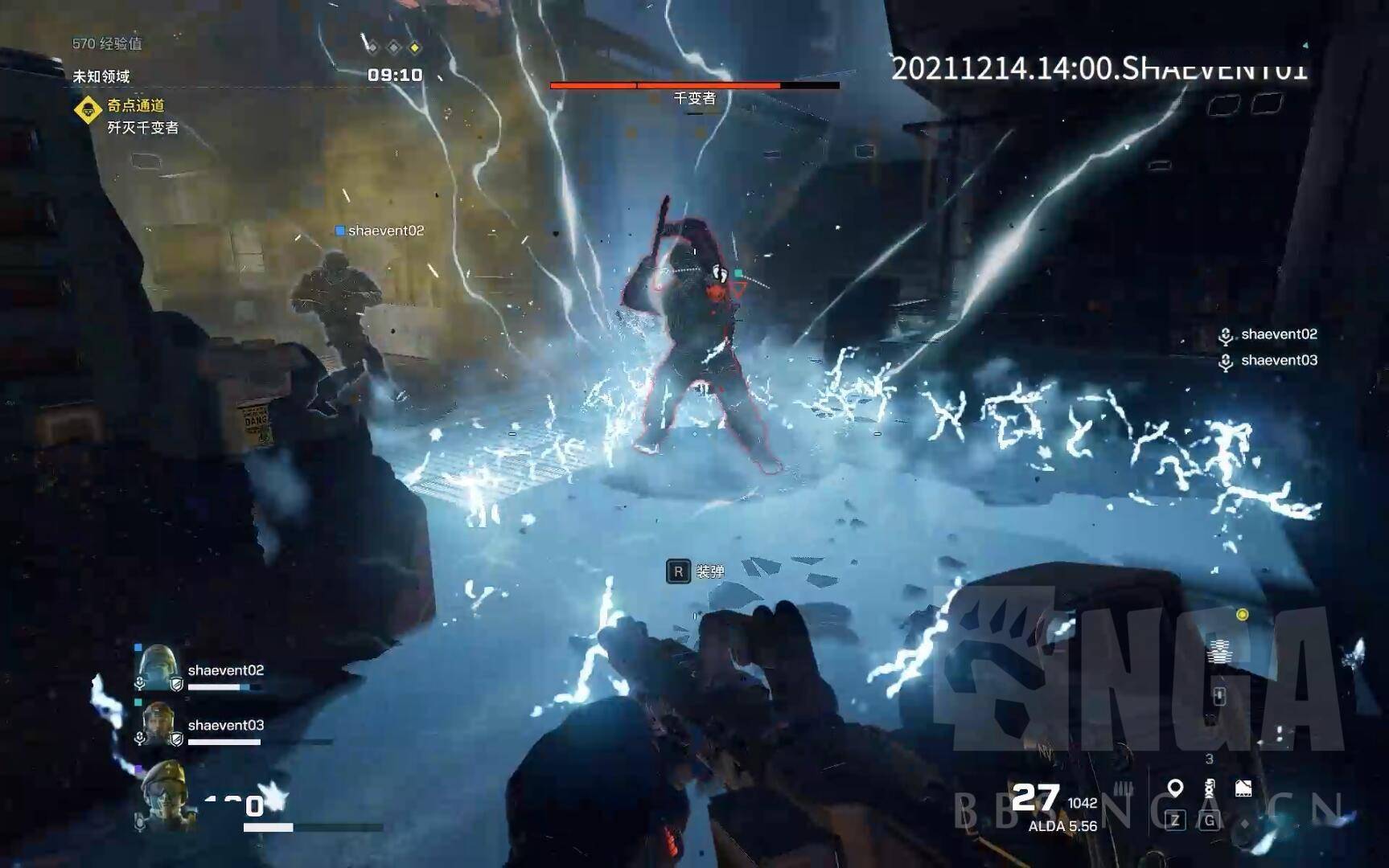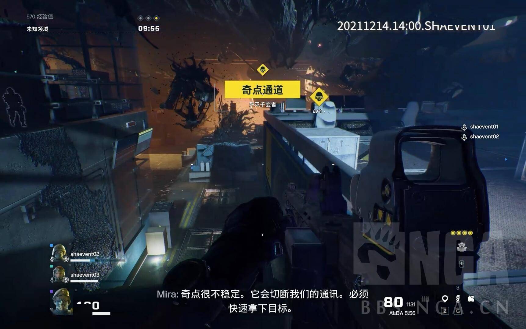 在本场试玩中,奇点通道仅开放了模仿大锤的千变者供各位试玩者挑战,为了在这次体验会中一睹“千变者”真容我们还重开了许多次才刷出来奇点通道的任务。在快速到达任务区域后,三位玩家需要在装置前确认后方可进入挑战区域,初次进入奇点通道后场地中只有一名千变者boss,在击杀流程中会刷新一些小怪,玩家在限时时间内击败千变者即可直接完成任务并直接进入结算阶段。