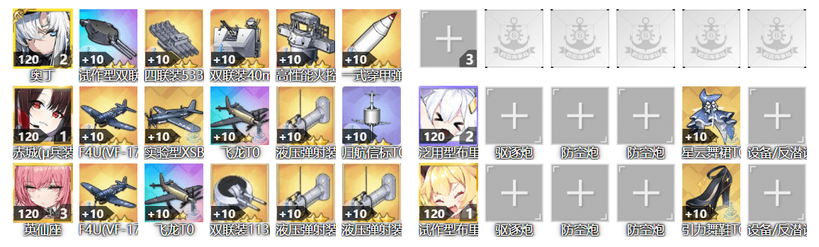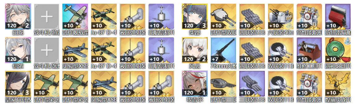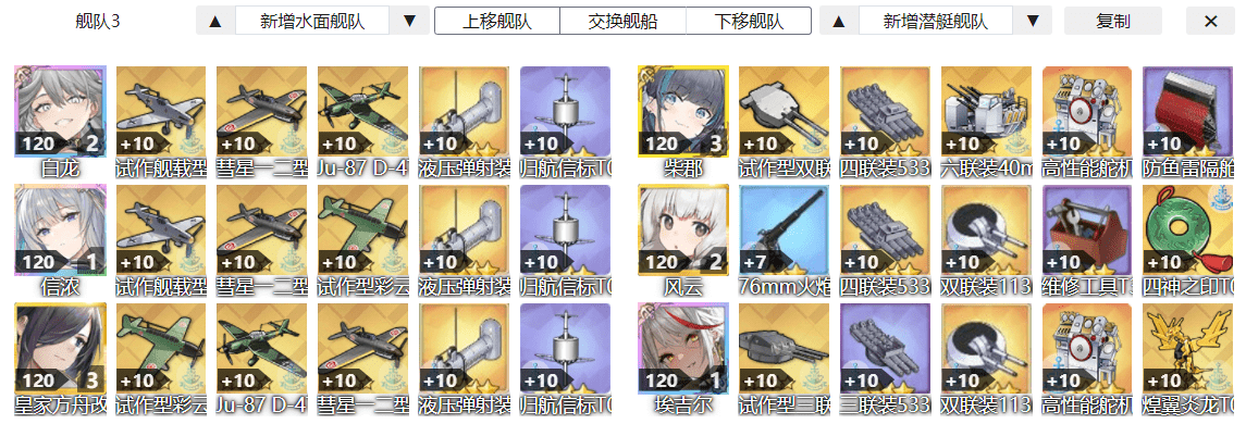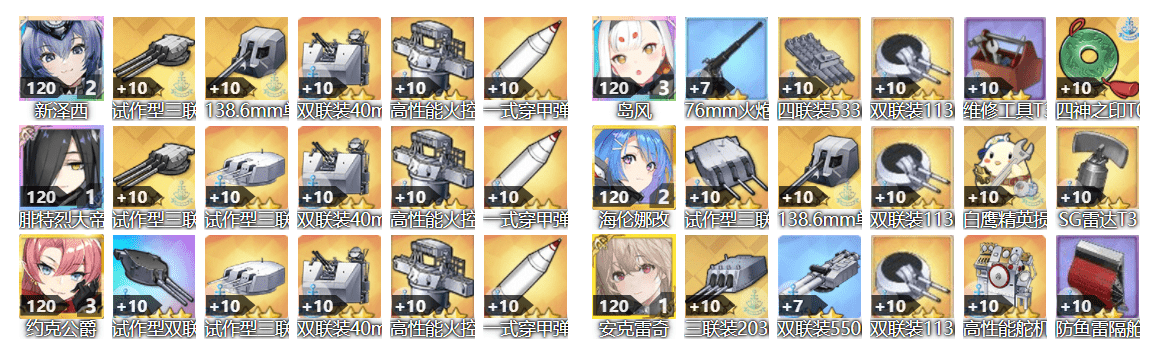 感谢虽来姐姐的思路,稍微微调了一些船和装备搭配。本文所有部分均为大型作战各类环境的懒人式过图服务,因此对于练度存在部分要求,服务于顶配顶练玩家为主。