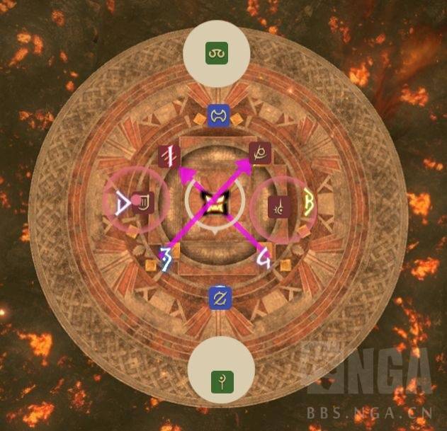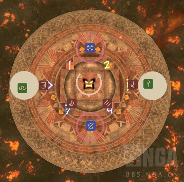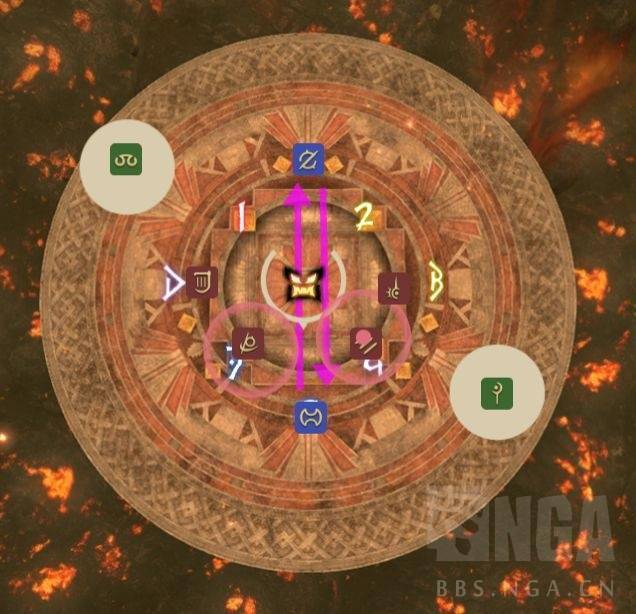 3. 钢铁+分散或分摊,钢铁火球出来后直接去场边,双t近战去A,双奶远程去C,不要等分散分摊球,钢铁判定比九连环快得多,等黑球必吃钢铁。