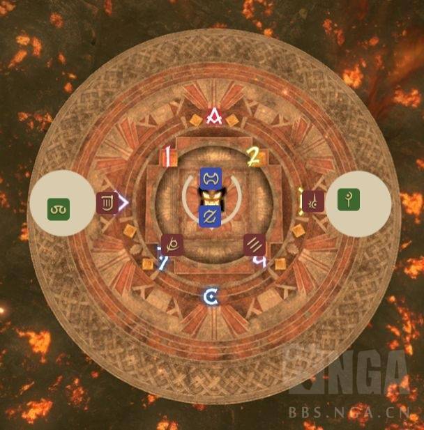 1. 十字火线:移动至外场躲避钢铁或九连环过程中千万注意不要踩到火线,有伤害降低,同时到场边后与火线保持距离,黄圈出现后,火线会扩大一次,吃到有伤害降低。