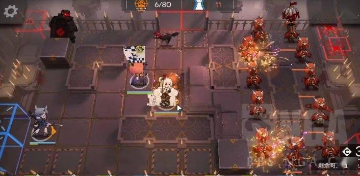 关卡难点:右边开局大量绯红歌伶转圈圈,中路高压,开局快速狼狗,BOSS群攻(物理)到主力容易团灭,左路箱子被拆大盾偷家等。