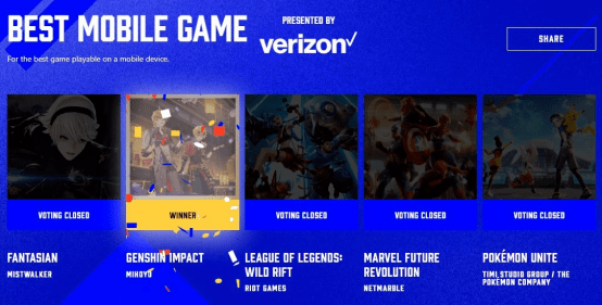 由上海米哈游一年多前推出的这款游戏目前已经在全球175个国家和地区上线,在2020年,《原神》不但占据了苹果App Store中美日韩全球四大手游市场游戏榜榜首的位置,还获得了索尼PlayStation Partner Awards 2021大奖和TGA 2021最佳手游奖,其火爆程度甚至连全球首富马斯克都在社交媒体上为之摇旗呐喊。