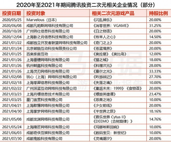在产品品类方面,无论是单机,还是二次元、卡牌、MMORPG、策略、射击等主流游戏类型,腾讯都有参与,光2021年一年,平均每个月就有超过7家游戏相关企业得到腾讯的投资。