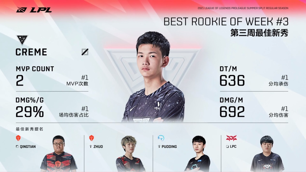 Crème短暂地“退役”了一段时间,马上年底满18岁又回来了,据说是感激OMG的知遇之恩选择留在OMG,不然这个选手顶着国产中单的帽子进入转会市场,预计能拿到不错的合同。