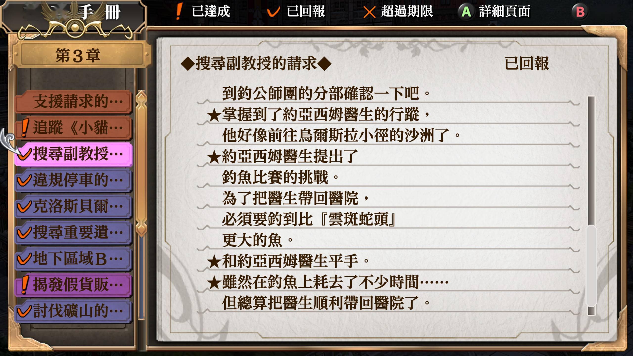 *甚至手册也是分为搜查、钓鱼、料理和战斗4个方向。