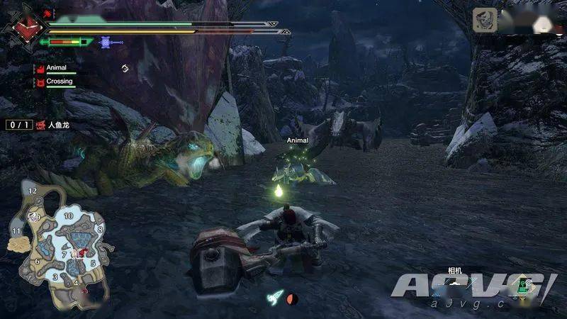 制作人:在PV中登场的新怪物叫做「冰狼龙」,这是在《曙光》中首次登场的怪物。但是我们在视频中所展现的并不是这个怪物的全部,它会以出人意料的行动来将猎人逼入绝境,敬请大家期待。