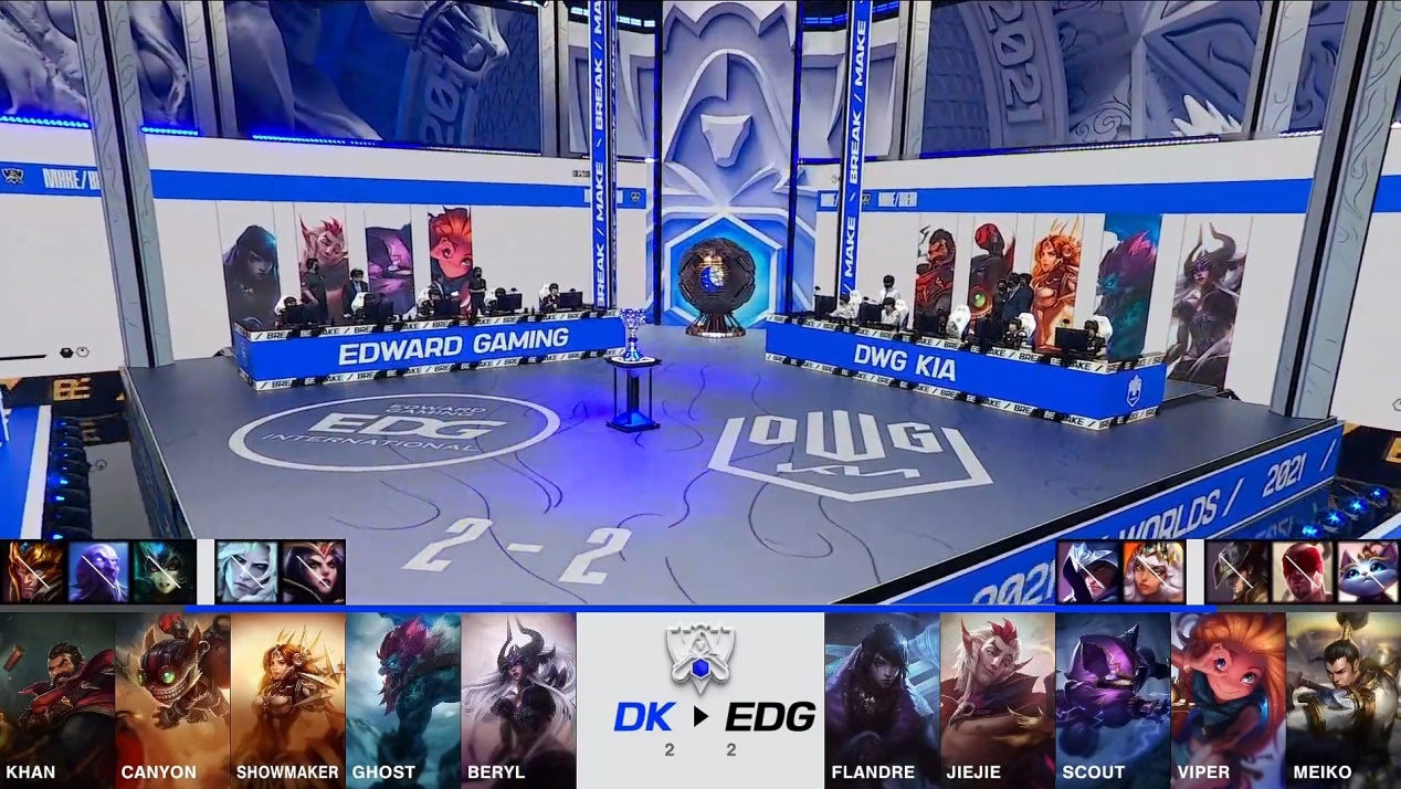 先和大家简单说一下,早在去年世界赛结束之后,EDG的阿布就在聊天的过程中告诉观众,EDG战队有很多秘密武器用来打DK的,以为DK战队也会掏出一些怪东西,等到决赛的进程中EDG就根据情况随机应变,看看是否有机会拿。