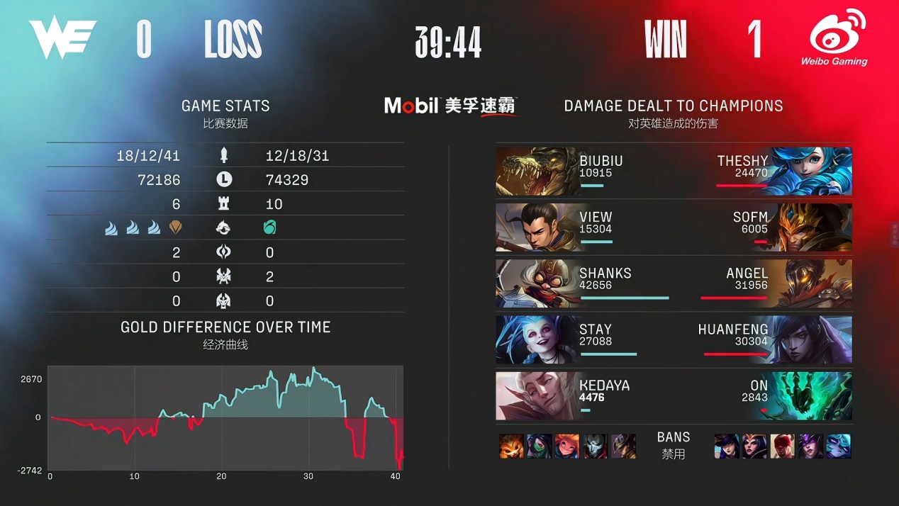 最终在中路的一波团战中,凭借The Shy与SofM的进场,WBG是顺利打赢团战并且一波结束比赛。