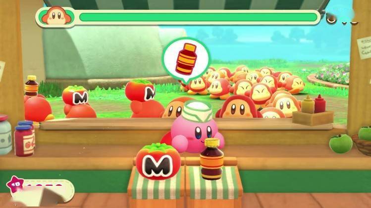卡比挑战「瓦豆鲁迪咖啡店」店员工作的小游戏。必须快速应对客人的订单,一边保持满意度来争取高分数。