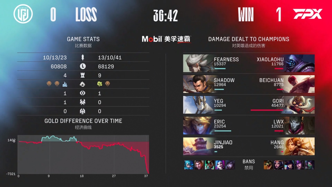 可以说Gori这一手飞机已经成为了他的招牌绝活,之后的比赛如果对方不BAN也不抢的话,飞机可以说Gori的首选英雄,Gori拥有强大的打团能力,如果能够注意好对线细节,FPX战队的实力会更上一层楼。