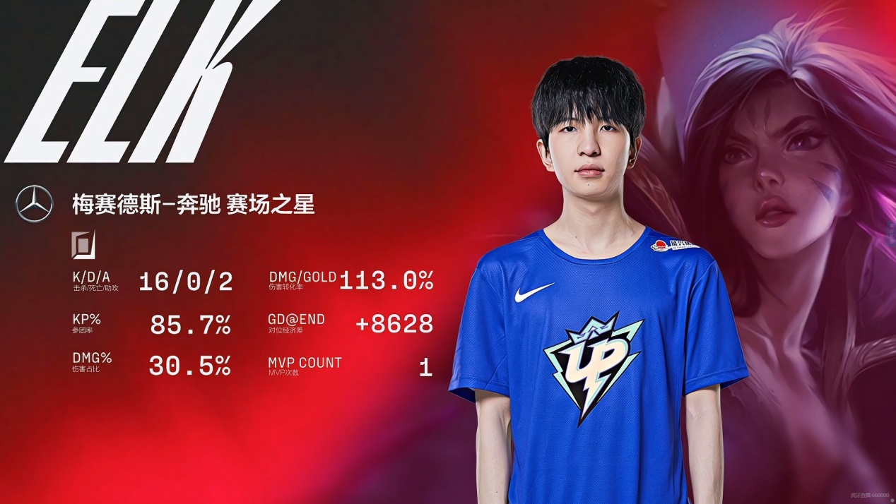 最终Elk的个人数据高达16-0-2,也是LPL开赛以来最强的个人数据。