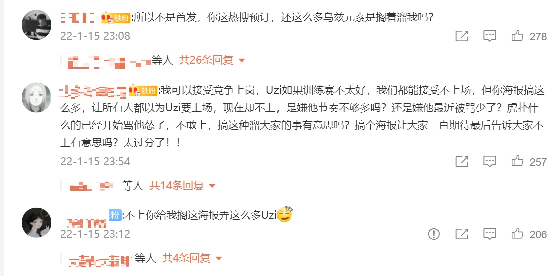结果最后的首发是Uzi没有上场,因此有很多观众有一种被耍了的感觉,因此很不满意。