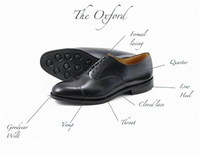 牛津鞋是低跟皮鞋,它的特点是鞋面襟片封闭(closed lacing),即鞋带把襟片牢牢地系在一起。这种设计使得鞋面非常贴合脚背,显示出整体性和凝聚力,是参加会议、欣赏歌剧等正式场合中最为恰当的选择。英国人也戏言“如果一个男人一生只有一双鞋,那一定是牛津鞋”。
